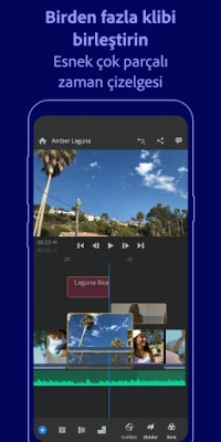 Hepsi bir arada, aygıtlar arası video düzenleyici Adobe Premiere Rush ile kanallarınıza harika içerikler ekleyin. Güçlü araçlarla istediğiniz profesyonel görünüme ve sese sahip videoları hızla oluşturun. Uygulamadan sevdiğiniz sosyal medyada paylaşım yapın ve tüm aygıtlarınızda çalışın. Sınırsız dışa aktarma ile ücretsiz kullanın veya tüm premium özelliklere ve yüzlerce film müziği, ses efekti, döngü, animasyonlu başlık, kaplama ve grafiğe erişmek için yükseltin.