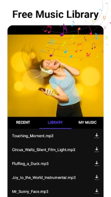 Bindirme efekti video sayesinde videolarınız daha parlak ve canlı bir görünüme kavuşur. Bunun yanı sıra uygulama, zengin içerikli ve çeşitli türlere sahip bir müzik kütüphanesine de sahiptir. Böylece videolarınızı daha çekici hale getirmek için istediğiniz şarkıları ekleyebilirsiniz.