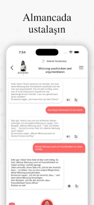 SprechenAI, Almanca dilinde akıcı olmanıza yardımcı olmak için tasarlanmış en gelişmiş uygulamadır. Almanca dilini öğrenmek isteyen her seviyedeki öğrencilere uygun olan 120'den fazla ders sunar. Etkileşimli dersler, kişiselleştirilmiş öğrenme, konuşarak öğrenme, dilbilgisi ve kelime bilgisi çalışmaları ve esnek abonelik planları gibi ana özellikler sunar.