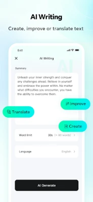 Bu uygulama, kullanıcıların dijital avatar videoları oluşturmalarına ve seslendirme metinlerini kolayca düzenlemelerine yardımcı olan bir AI robotudur. Kullanıcılar, 30 saniyelik bir videoyu yükleyerek veya çekerek görünüm ve seslerini çekici AI avatar videolarına dönüştürebilir. Ayrıca, seslendirme metinlerini oluşturmak ve çevirmek için AI yazma işlevi de mevcuttur.