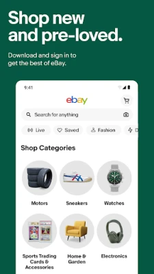 eBay uygulaması aracılığıyla çevrimiçi alışveriş ve satış yapmak çok kolay. Gerçek zamanlı bildirimler alın ve kişiselleştirilmiş anlık bildirimlerle cihazınıza günlük fırsatlar, açık artırmalar, sipariş güncellemeleri ve çok daha fazlası gönderin. İhtiyaç duymadığınız ürünlere yeni bir yuva bulun. Giysi, teknoloji veya araba parçaları satmak isteseniz de uygulamamız her zaman parmaklarınızın ucunda.