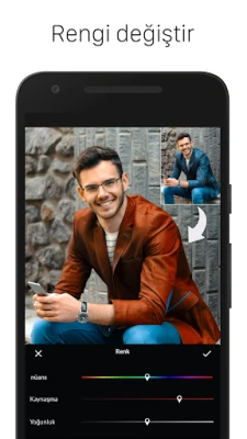 Uygulama, fotoğrafların renklerini düzenlemek için bir dizi filtre ve ayarlama aracı sunmaktadır. Renk karıştırma, eğriler, retro, kızıllık, siyah-beyaz gibi farklı filtreler ve doygunluk, kontrast, pozlama gibi ayarlamalar yapmak mümkündür. Ayrıca benzer renk sıçrama bölgelerini otomatik olarak seçmek için akıllı bir kement aracı da mevcuttur.
