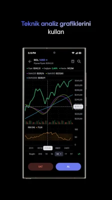 BTC ve ETH'nin yanı sıra diğer coin ve token'ları düşük komisyonlarla alıp satarken, banka hesabından 7/24 ücretsiz USD ve TL aktararak dilediğin para birimiyle yatırım yapabilirsin. Ayrıca uygulama üzerinden Bitcoin, Ethereum gibi popüler kripto paraların yanı sıra yapay zeka coin'leri, memecoin'ler ve 300'den fazla altcoine yatırım yapabilirsin.