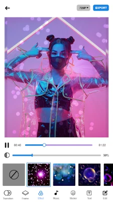 2. Geçiş efektlerini seçin ve fotoğraflarınızla kreatif bir slayt gösterisi oluşturun.
