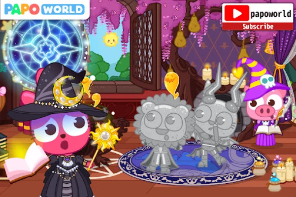 Papo Town Sihirli Dünya, altı farklı sahneden oluşan bir uygulamadır. Bu sahneler sihirli tren platformu, sihirli dükkan, sihirli okul, karanlık sihir evi, büyücünün odası ve fantastik oda şeklindedir. Bu farklı sahnelerde iyileştirici malzemeleri keşfedebilirsiniz. Malzemeleri almak içinse bulmacaları çözmeniz gerekmektedir. Papo arkadaşlarınızı kurtarabilecek misiniz?