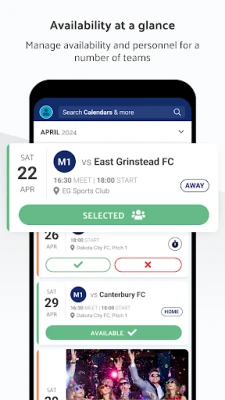 Tüm gelecekteki maçları yükleyerek sezon için önceden plan yapabilirsiniz. Velilere ve oyunculara otomatik hatırlatıcılar gönderilir, böylece kimin ne zaman müsait olduğunu bilir ve takımınızı seçebilirsiniz.