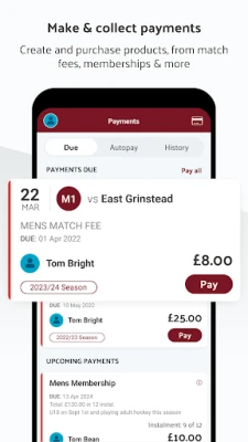 Takım ödemelerini (abonelikler, biletler, maç ücretleri) kolay bir şekilde uygulama içinde tek tıklamayla alın ve takip edin.