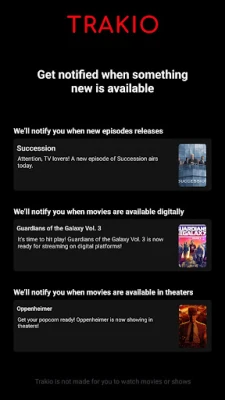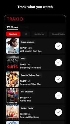 Trakio, aradığınız film ve TV rehberi uygulamasıdır. Trakio ile kolaylıkla TV şovlarını, filmleri ve izlediğiniz bölümleri takip edebilir ve aynı zamanda yeni çıkanları da takip edebilirsiniz.