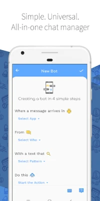 Bu uygulama, mesajlarınızı otomatik olarak yanıtlayabilme yeteneğine sahiptir. Ayrıca, konum bilgisi ile otomatik cevap verebilir ve metin mesajlarını ve görüntüleri zamanlayabilirsiniz. Cihaz kilitliyken de kullanılabilmektedir ve yeni sohbet menüleri sayesinde mesajlarınızı daha hızlı bir şekilde yönetebilirsiniz.